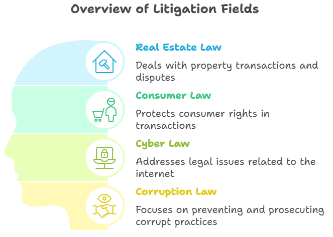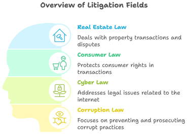 We offer services in corporate law, arbitration, real estate law, family law, consumer law, cyber law, and litigation.